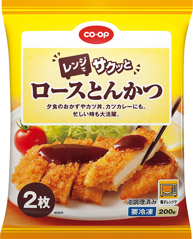 電子レンジ調理できる大判ロースとんかつです。レンジでも衣のサクサク感を味わうことができます。