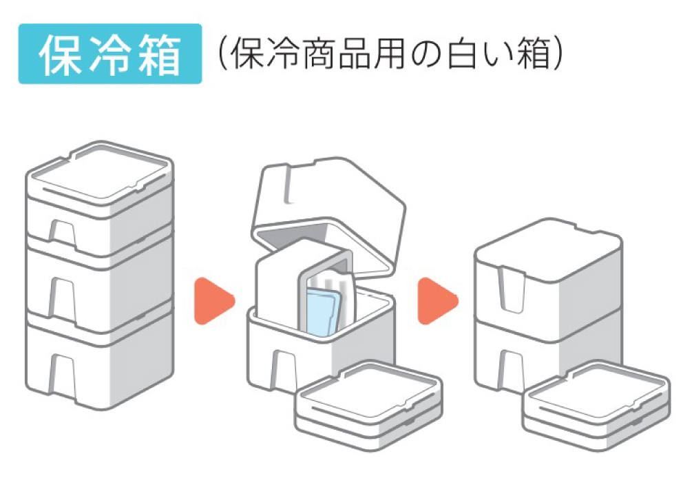 保冷箱もプラスチックコンテナも下記のようにコンパクトにまとめることができるので、ぜひ参考にしてみてください。 ※空箱は翌週のお届け日に回収しています。