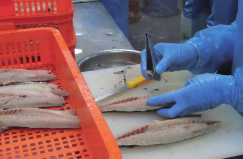 骨取り加工はタイとベトナムの工場ですべて手作業によって行われます。骨だけでなく、同様の商品ではあまり除去されない胸ビレや腹ビレ、黒い腹皮までをすべて除去するのがコープのさばのこだわりです。